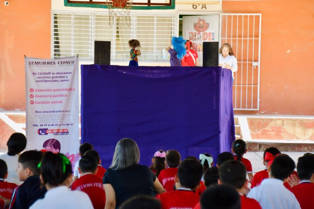 En esta ocasión, la presidenta municipal, Lupita López González, estuvo presente en la primaria Lázaro Cárdenas de la colonia La Gloria, donde, con el apoyo de CEPAVIF, se presentó la obra de teatro guiñol titulada “Mi casa, mi refugio”, dirigida a alumnos y padres de familia.