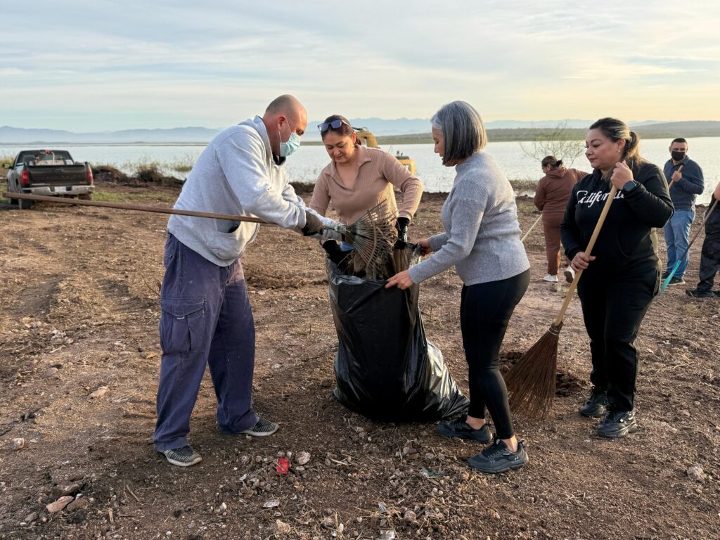Guamúchil, Sinaloa; a 31 de enero del 2026.– La presidenta municipal, Lupita López González, encabezó este fin de semana la jornada “Cerca del Pueblo”, realizada en la zona de las cooperativas pesqueras de la presa Eustaquio Buelna, donde se llevó a cabo una limpieza exhaustiva con el objetivo de embellecer el área y dejarla en óptimas condiciones para que las familias puedan disfrutar de este importante espacio turístico, especialmente en esta temporada que arriban los pelícanos.