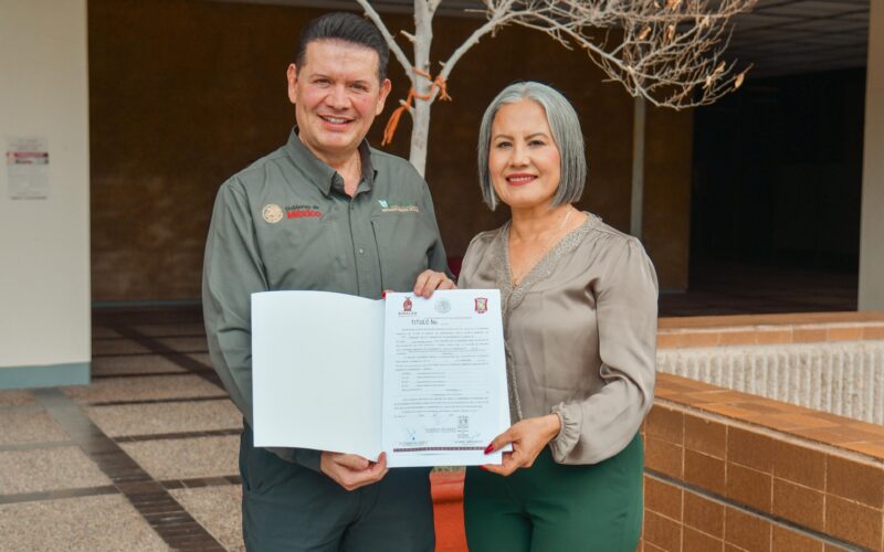 Guamúchil, Sinaloa; a 08 de enero de 2026.– La presidenta municipal de Salvador Alvarado, Lupita López González, sostuvo una reunión de trabajo con el delegado del IMSS Bienestar en Sinaloa, Julio César Quintero Ledezma, a quien le hizo entrega formal del título de propiedad del terreno donde se construirá el nuevo hospital para Guamúchil y la región del Évora.