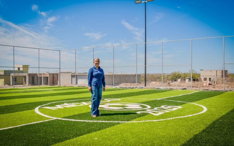 Supervisa Lupita López avance de nuevas canchas de fútbol en Salvador Alvarado